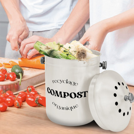 Nom Linxor - Composteur, bac, poubelle à compost de cuisine 5L rond en Inox - Beige |