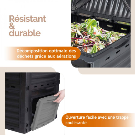 Nom Linxor - Composteur, bac, poubelle à compost de jardin - 300 L - Noir et Gris |