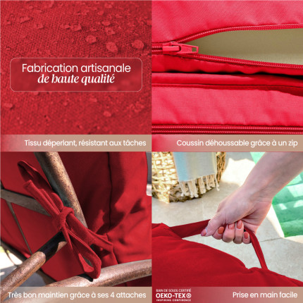 Nom Linxor - Coussin déhoussable pour bain de soleil, transat - 183 x 60 cm - Rouge |