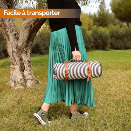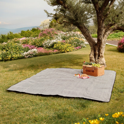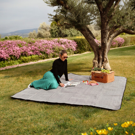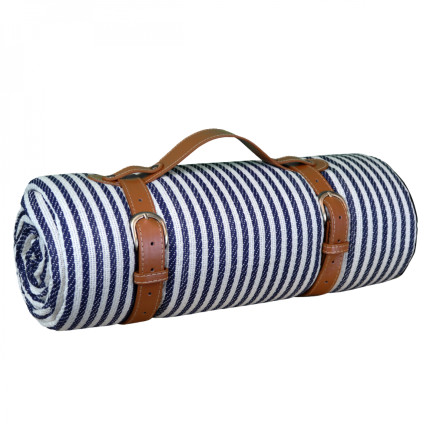 Nom Linxor - Couverture, tapis, nappe de pique-nique imperméable - 200 x 200 cm - Rayé bleu |