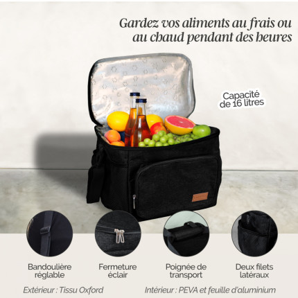 Nom Linxor - Sac de pique-nique, glacière isotherme - 16 L - Noir |
