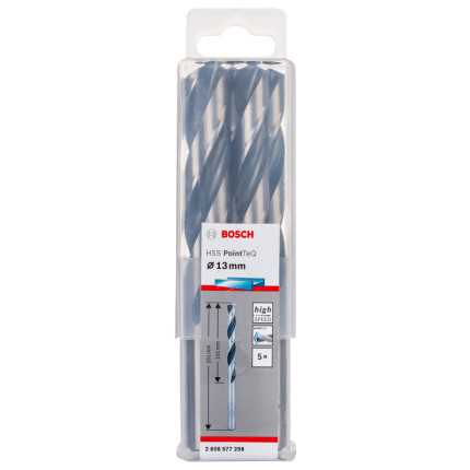 Informations produit : Bosch Professional 5x forets hélicoïdaux HSS PointTeQ (pour métal, 13 x 101 x 151 mm, accessoires pour perceuses-visseuses) | Modèles concernés : 2608577298
